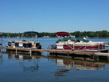 Our boats are very easy to drive and takes very little instruction. The engines have enough power to pull tubers up and down the beautiful warm waters of Conesus. The Pontoons are equipped with am/fm/bluetooth, bimini top, easy step ladders, and plush seating for 10 to 12 people including a reclining/swivel chair for the Captain. TRI-TOON AVAILABLE W/ ELECTRIC POWER BIMINI